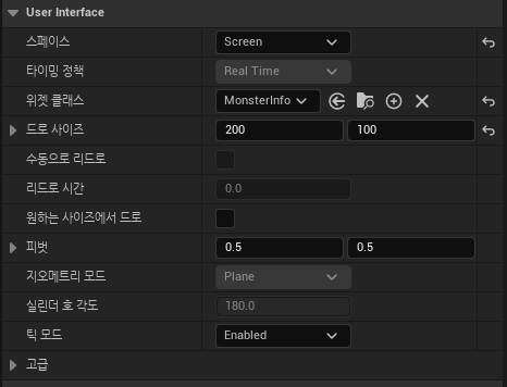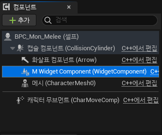 UI를 추가할 몬스터에 Widget Component를 추가하고