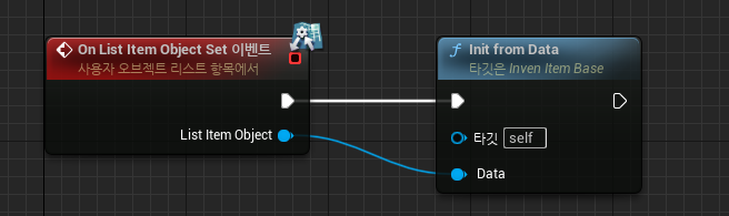 블루프린트에서 Object Set 이벤트에 방금 만든 함수를 연결해 줘야 ListView에서 AddItem 함수를 호출했을 때 성공적으로 이 함수에 데이터를 전달할 수 있다.