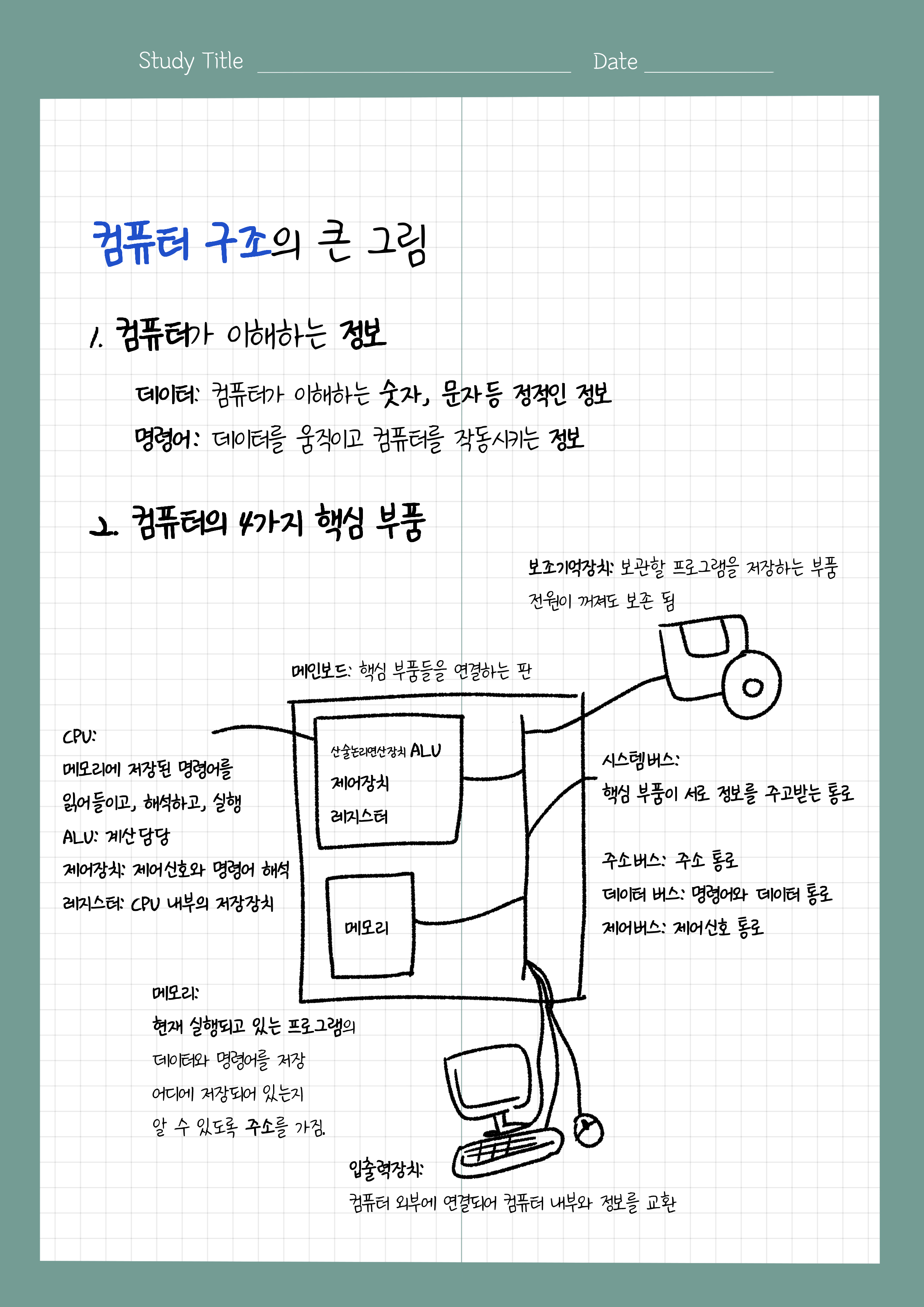 2. 워드(word): CPU가 한 번에 처리할 수 있는 데이터 크기.